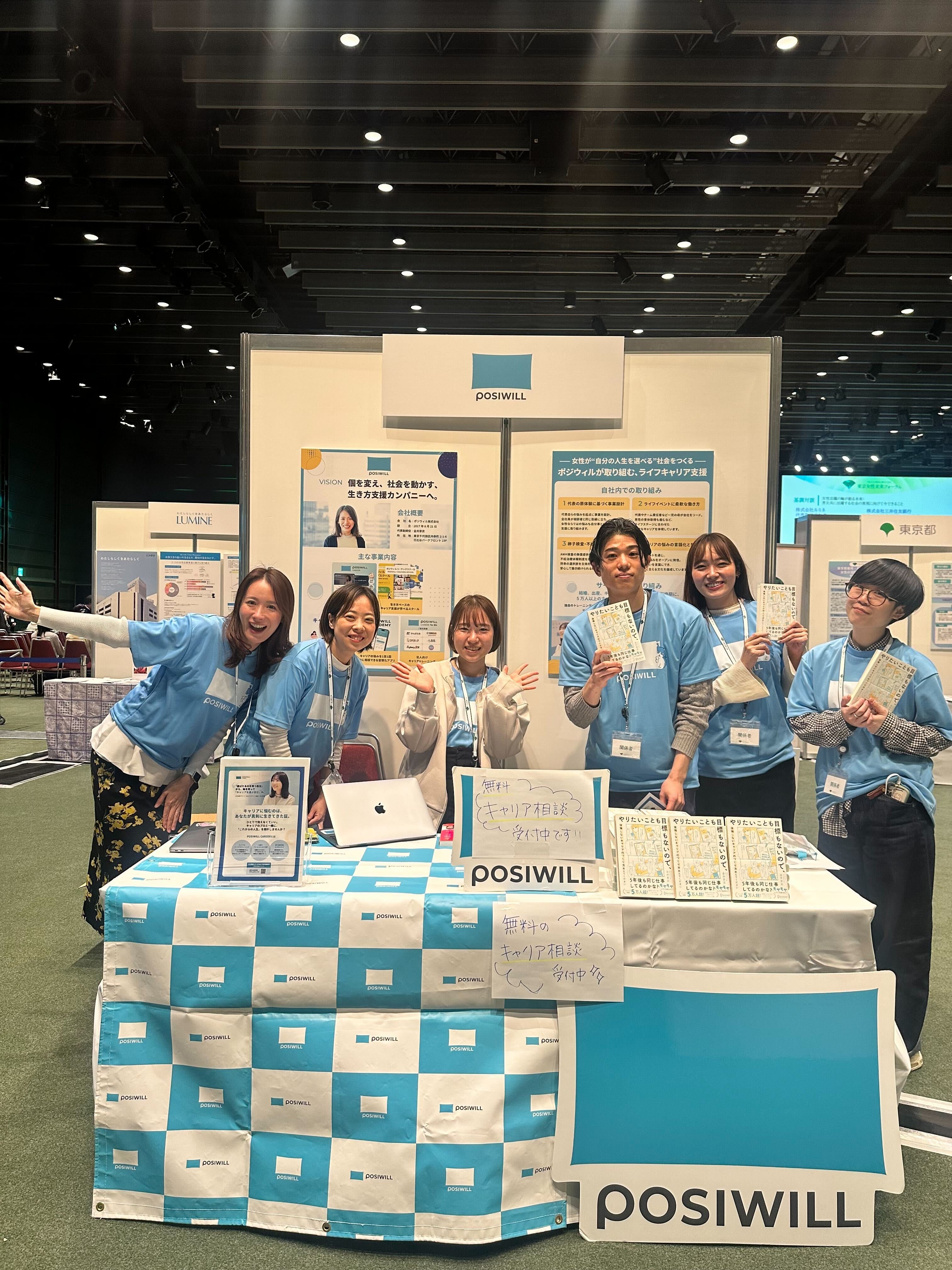 また、会場内ではポジウィルのブース出展も行い、多くの来場者の方々に私たちの「生き方支援」の取り組みを知っていただく機会となりました。